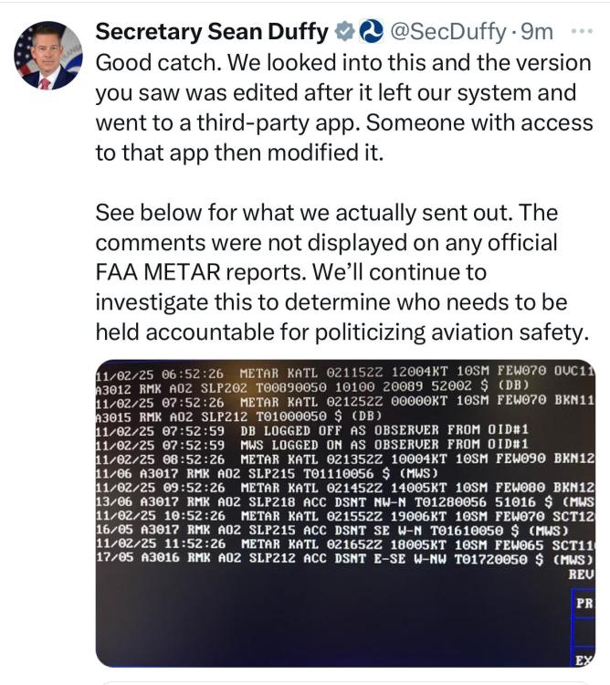 I also saw this somewhere on X, so I just went to this site and pulled up the same METAR I’ll need to see some legit reporting/posts before I believe it. https://metar-taf.com/metar/KATL.20251102.1652