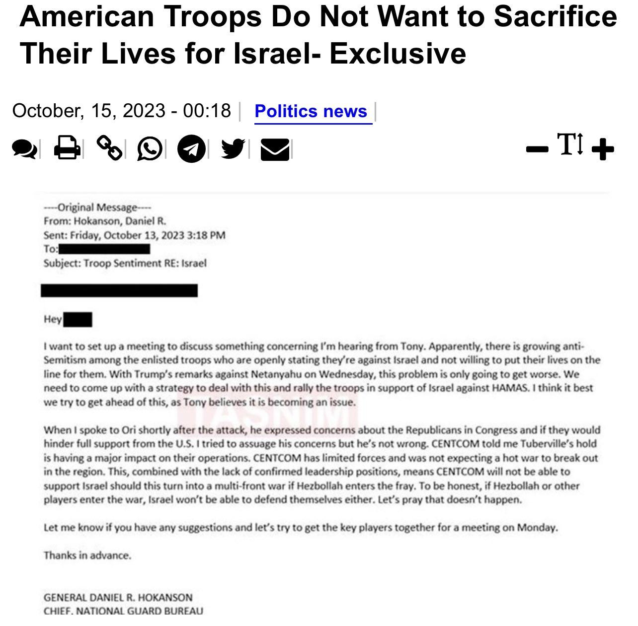Wall Street Journal says the first 2,000 troops have received deployment orders for Israel support on the ground. Could be fake. Not sure.